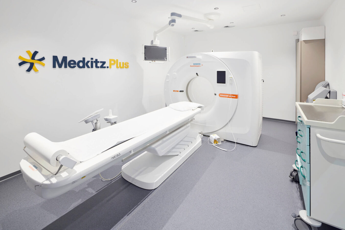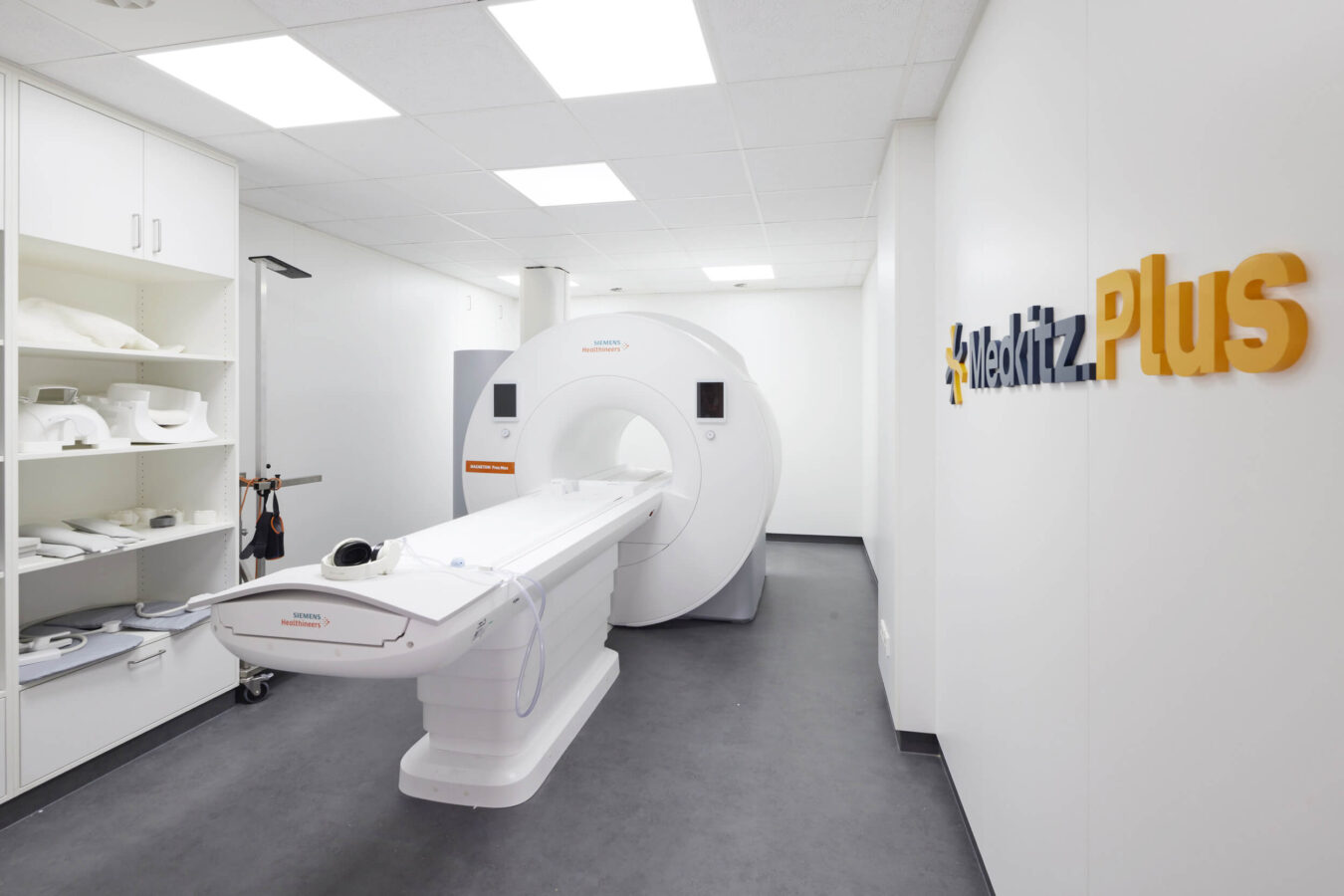 Das Niederfeld-MRT mit 0.55 Tesla, welches im Medkitz.Plus zum Einsatz kommt bietet eine schonende und präzise Diagnostik bei Beschwerden von Gelenkprothesen (Hüfte, Knie, Schulter) sowie nach Wirbelsäulenoperationen, insbesondere nach Versteifungen der Lendenwirbel- oder Halswirbelsäule. Im Vergleich zu herkömmlichen Hochfeld-MRTs hat das Niederfeld-MRT entscheidende Vorteile, in der Diagnostik von schmerzhaften Gelenkprothesen: