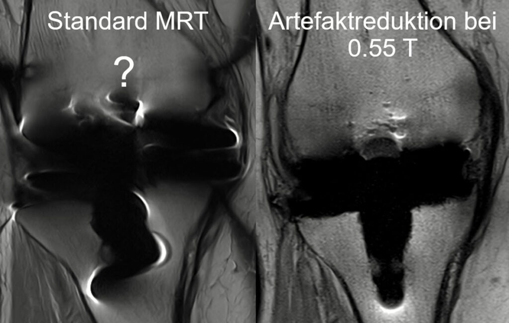 Das 0.55 Tesla MRT reduziert störende Bildverzerrungen durch Metallimplantate wie Prothesen oder Schrauben.